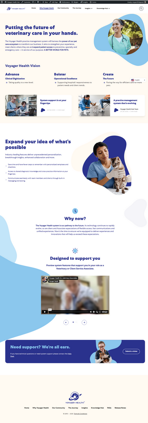 I led the strategy, content and build for the reimagined Voyager Health Hub — a sleek, centralized site that delivered a targeted experience based on each visitor's hospital brand. Built in collaboration with internal teams and Rhapsody Media, the result was an intuitive, consistent and tailored experience from the first click to the final scroll.